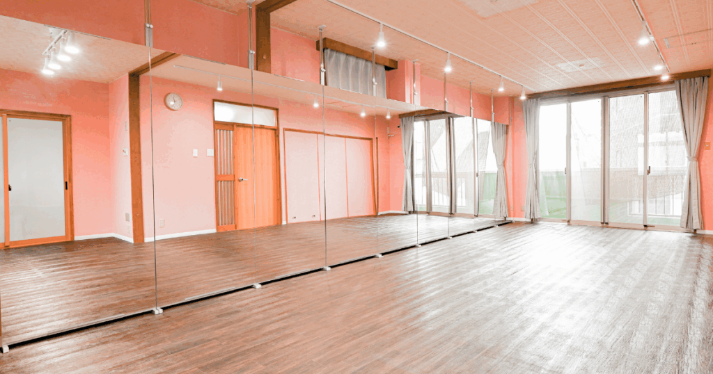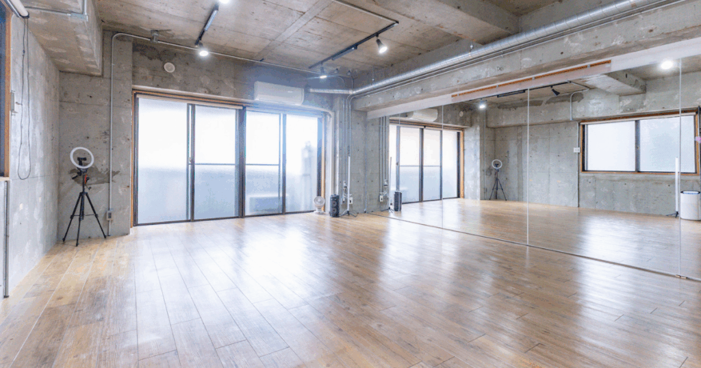 床材の種類: ダンスなら滑りにくいリノリウム、ヨガならクッション性など、目的に合った床材か確認が必要です。